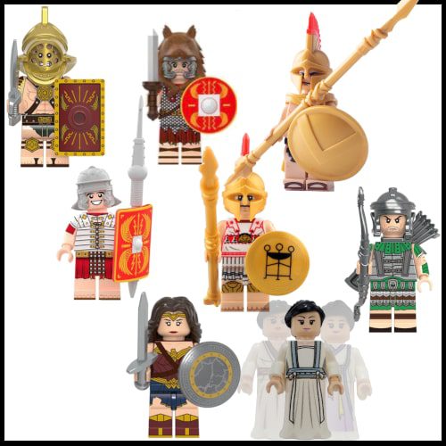 Minifiguras para personagens gregos e romanos.